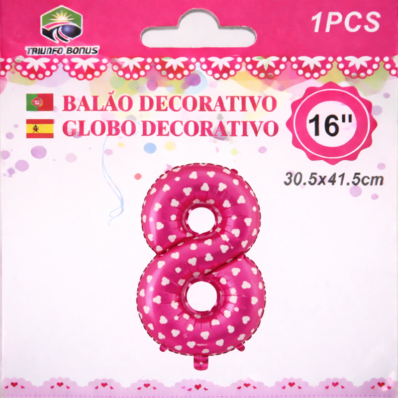Balão de Número Rosa nº8 16“