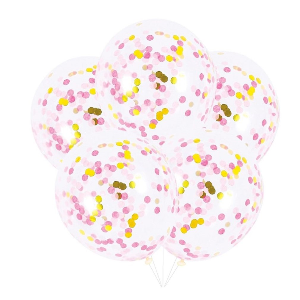 5 Balões com Confetis Rosa/Dourado 30cm