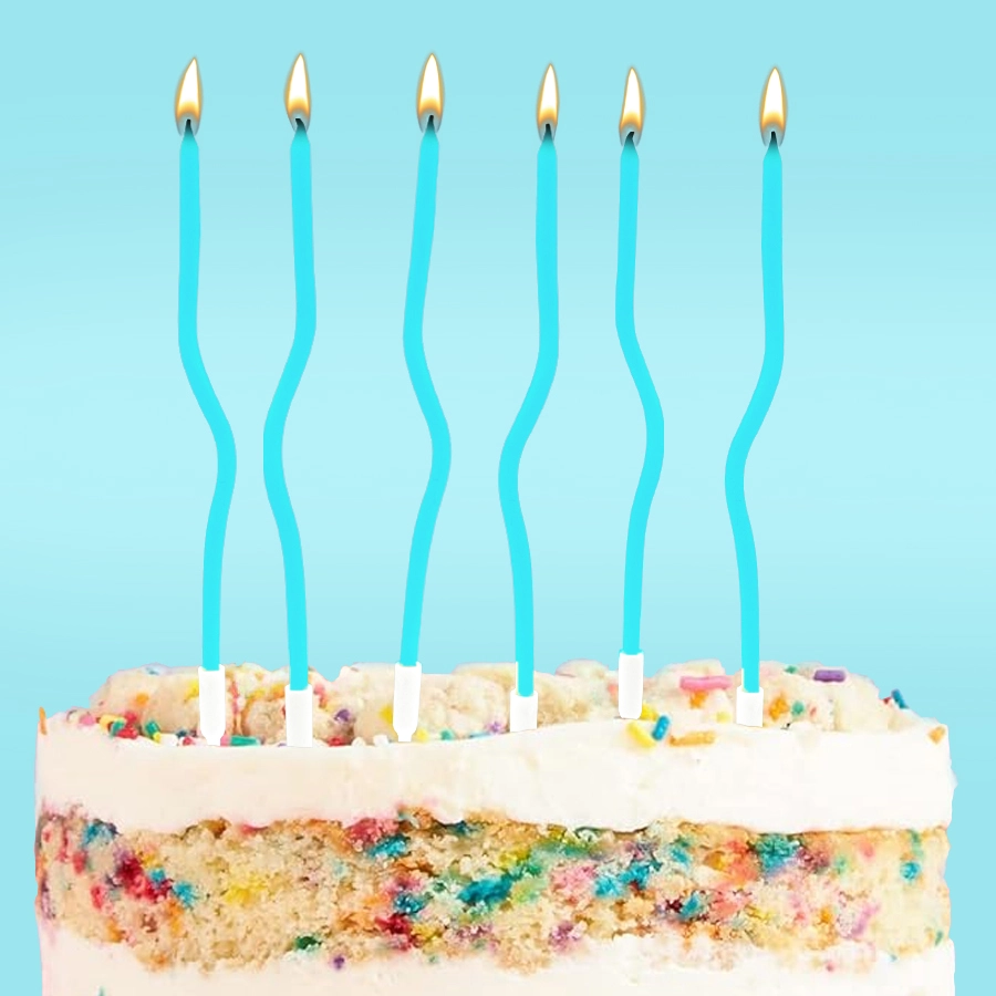 6 Velas Torcidas Azul Claro 12.5cm
