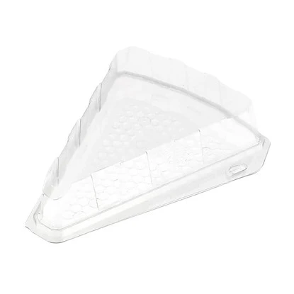 Apresente as suas fatias de bolo com conforto e estilo usando a embalagem triangular de porção individual com tampa modelo dobradiça, especialmente pensada para acomodar porções nas dimensões de 16,2 × 13,5 × 8 cm;