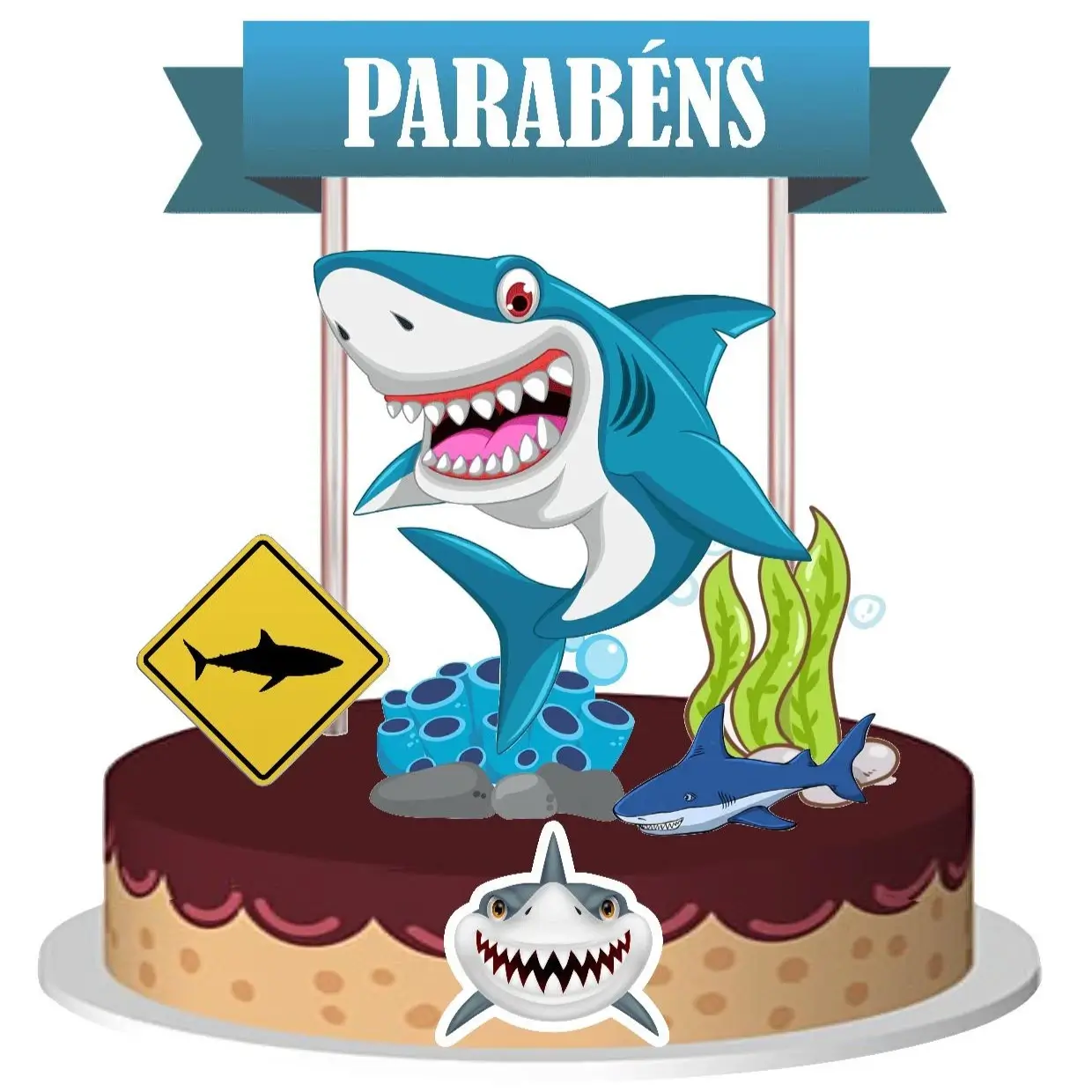Topo de Bolo em Papel Camada Dupla Tubarão