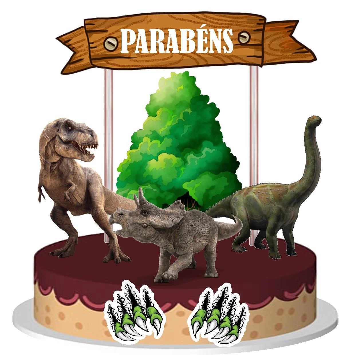 Topo de Bolo em Papel Camada Dupla Dinossauros