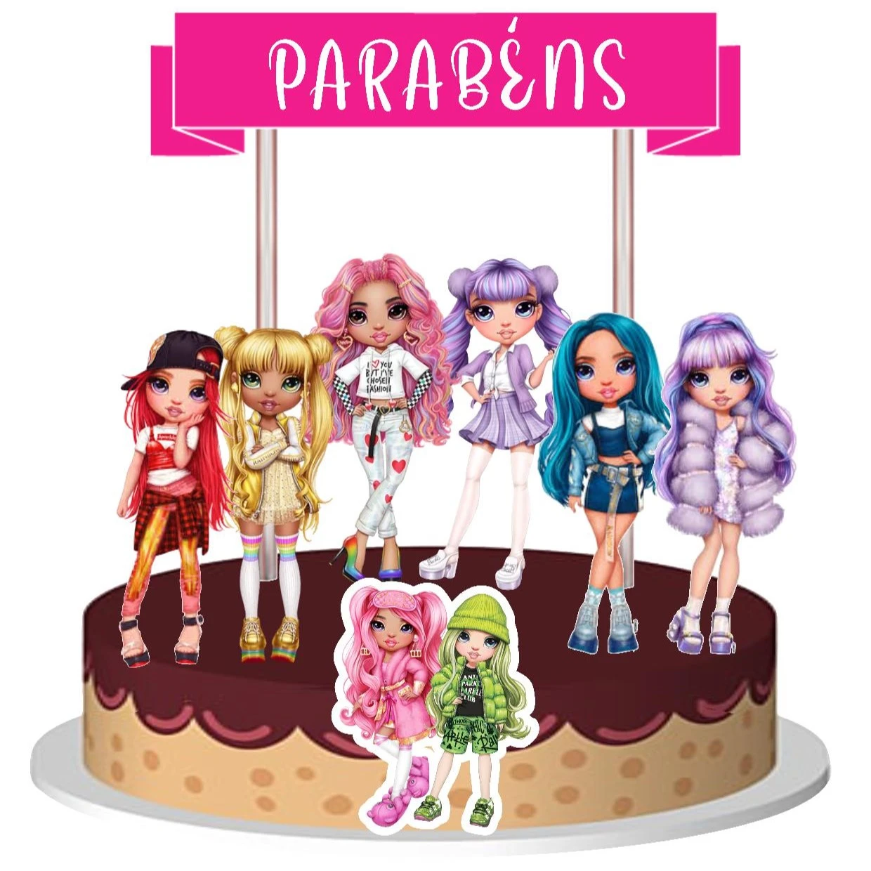 Topo de Bolo em Papel Camada Dupla Rainbow High