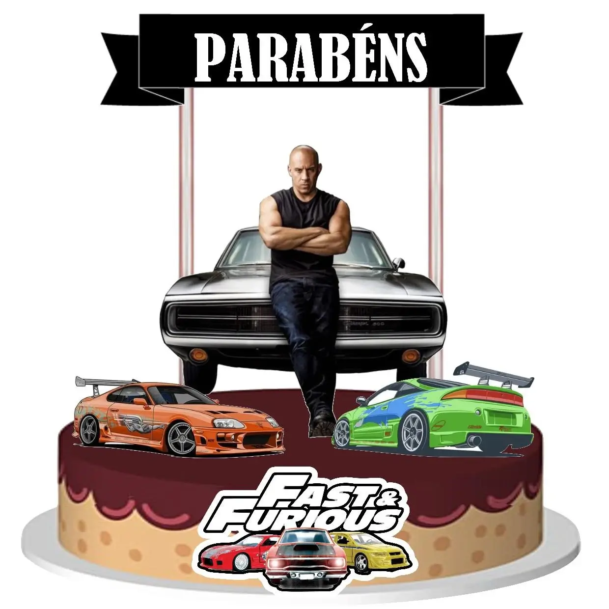 Topo de Bolo em Papel Camada Dupla Velozes e Furiosos